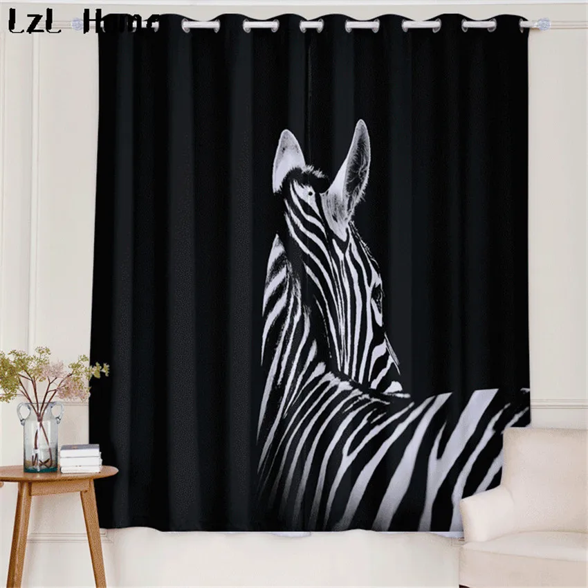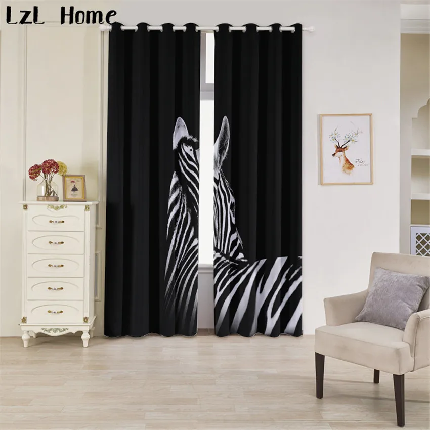 BEST LzL Home animal pattern 3d window curtain zebra and deer with glasses blackout curtains for living