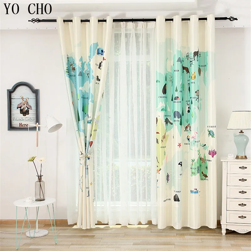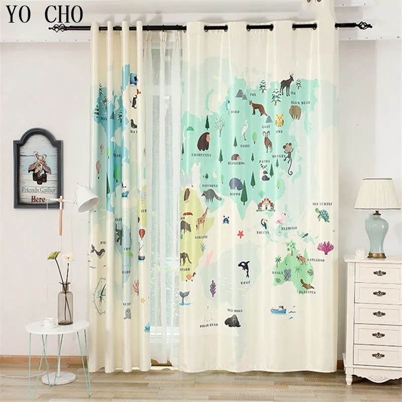 YO CHO cartoon animals map blackout curtains for the bedroom lovely fashion kids room window curtai
