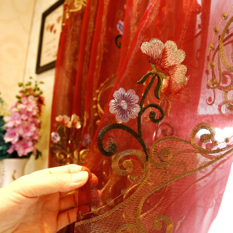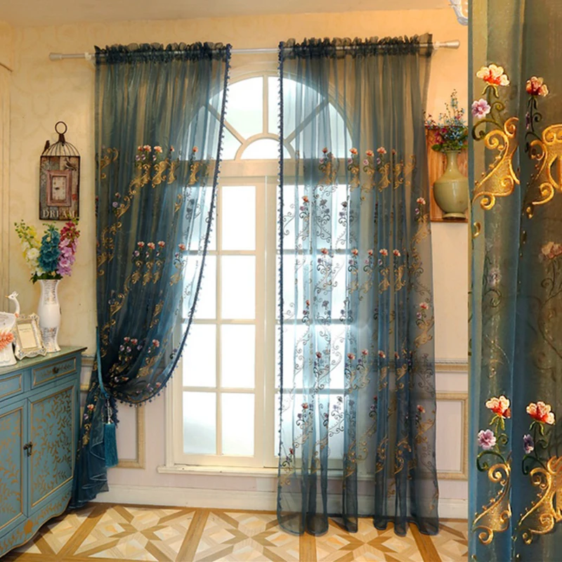 ORIGINAL European Blue Embroidered Voile Curtains Bedroom Sheer Curtains for Living Room Tulle Window Curtai